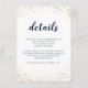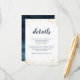 Elegant enclosure card for your navy blue and gold themed wedding. This card has editable texts where you can explain the hotel accommodations and list your website address so guests can find helpful information during their stay for the wedding. The back of the card is a beautifully painted abstract watercolor painting in navy blue ombre. The front of the card has pretty gold glitters on the top and bottom.