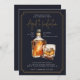 Navy Blue Gold Whiskey Bottle Birthday Invitation