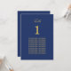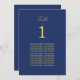 Navy Blue Golden Beige Guest Names Table Card, easy to personalise in the online personalisation template in order to show the table number for the appropriate table and the guest names for that table. The design copies across to the other side of the card automatically so as to help guests to find their table from either side of the table. This table card design features stylish text in a golden shade of beige (faux gold / gold look) on a classic navy blue background. Featuring a simple plain minimalist design layout, the table card incorporates space around the text elements to allow for choice of display methods such as hanging or framing the card.