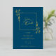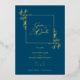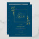 Navy Trendy Modern Branches Real Golden Effect Photo Metallic Foil Save the Date Card with Envelope.