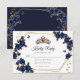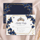 Navy Blue Golden Roses Tiara Quinceañera RSVP Card