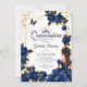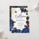 Navy Blue Golden Tiara Roses Quinceañera Invitation