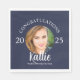 Modern navy blue "Congratulations" Class of 2025 graduation paper napkins, personalised with a photo, the name, school, and graduation year of the graduate. Perfect for high school or college graduates. The navy blue background can be customised with your own school colours with Zazzle design tools. Contact me for assistance with your customisations or to request additional matching or coordinating Zazzle products.