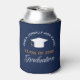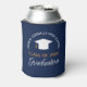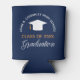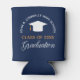 This chic navy blue and gold custom senior graduation party can cooler features classy white typography under a high school or college grad cap for the class of 2025. Customise with your graduating year and senior graduate name under the chic calligraphy.