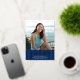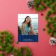 Be proud, rejoice and announce to the world that your favourite grad has reached their milestone with this stunning, simple, modern, personalised announcement invite. Sparkly, elegant, real gold foil calligraphy script, white sans serif typography and a photo of your choice overlay a navy blue striped background. Personalise the custom text with your graduate’s name, school name, class year, and graduation date. On the back, add your personal note, next school they’re attending, party information, etc. Matching and coordinating thank you cards, cap toppers, fans, napkins, plates, banners and other graduation goodies are also available in this trendy and stylish collection. Guaranteed to add stylish fun to their special occasion!