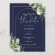 Navy Blue Greenery Gold Arch QR Code Wedding Save The Date