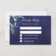 Navy blue greenery wedding RSVP Card