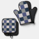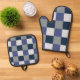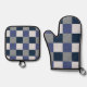 Navy Blue Grey White Chequerboard Oven Mitt & Pot Holder Set