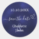 Navy blue heart wedding Save the Date Classic Round Sticker