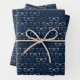 Fun and whimsical navy blue wrapping paper sheets with a hipster glasses pattern in shades of navy, blue and white.