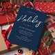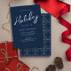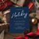Invite guests to your celebration with this elegant navy blue holiday party invitation, featuring beautiful calligraphy script typography and delicate winter snowflakes. The simple, minimalist design exudes timeless charm and sophistication, perfect for a Christmas party or festive winter gathering. This classic and stylish holiday party invite sets the tone for an evening filled with warmth, cheer, and seasonal elegance.