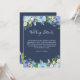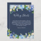 Navy Blue Hydrangeas Floral Wedding Info Details Card.