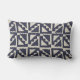 Navy Blue Ivory Tribal Print Ikat Triangle Pattern Lumbar Cushion
