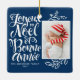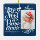 Navy Blue Joyeux Noël and Bonne Année Photo Ceramic Ornament