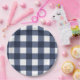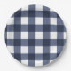 Navy Blue Large Classic Gingham Check Plaid Paper Plate