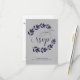 These beautiful RSVP cards will make it easy for your guests to respond to your wedding invitation. They feature an elegant design with fancy script calligraphy and hand painted navy blue coloured laurel leaves on a marbled grey background. The back of the card is a form for your guests to fill out and return indicating if they can attend or not, the number of guests they're bringing, and their choice of meals. There is also space for a website so your guests can respond online if it's more convenient for them.