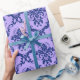 Navy Blue & Lavender Floral Damasks Pattern Wrapping Paper
