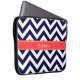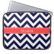Navy Blue Lg Chevron Coral Red Name Monogram Laptop Sleeve