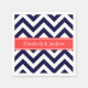 Navy Blue Lg Chevron Coral Red Name Monogram Napkin