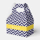 Navy Blue and White Large Chevron ZigZag Pattern, Pineapple Yellow Ribbon Name Monogram Label