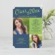 Navy blue and lime green photo graduation party invitation. Add two photos to the front and one to the back.