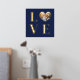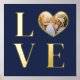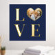 Navy blue romantic typography gold foil print with LOVE in golden letters and a photo of the two of you filling the heart replacing the O in Love.