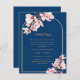 Navy Blue Magnolia Floral Wedding Details Card | Blush Pink Flowers & Gold Arch | Elegant Enclosure Information Card.