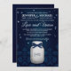 Navy Blue Mason Jar with Fireflies Wedding Invitation
