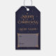 Beautiful Vintage Merry Christmas Gift Tag in gold lettering on a navy blue textured background. Just ready for you to tag that special gift for your loved one, family & friends