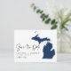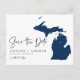 Navy Blue Michigan Map QR Code Save the Date Announcement Postcard