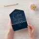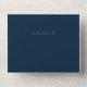 Elegant and minimal wedding invitation card with an RSVP card featuring a modern script text on a navy blue background.