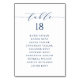 Customisable table number seating plan. It features a navy blue whimsical script and classic typography. Personalise by adding your own details. This minimalist table seating plan is perfect for weddings, baby showers, bridal showers, birthdays, and so much more.