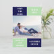 Navy blue and mint green colour block wedding Save the Date card. The back includes a pattern with wide bands in navy blue and mint green.