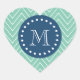 Navy Blue, Mint Green Chevron Pattern | Your Monog Heart Sticker