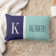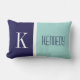 Navy Blue Mint Green Colour Block Stripe Monogram Lumbar Cushion