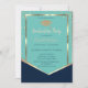 Navy Blue Mint Green Gold Diamonds Graduation Invitation