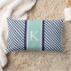 Navy Blue Mint Stripes & Monogram Lumbar Cushion