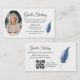 A sleek, modern business card design for mobile notary services featuring a rich navy feather, QR code for instant access to services, and a professional photo layout. Perfect for conveying trust, clarity, and approachability in high-stakes document work.