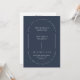 This elegant modern minimalist wedding invitation features a stylish arch layout with circular text reading "kindly join us to celebrate the wedding of" elegantly placed at the top, adding a romantic and formal touch on a navy blue background. The sophisticated serif font highlights the couple’s names with a clean and refined look. The back of the card includes space for a personal photo of the happy couple and a customizable QR code for guests to RSVP and find more details.