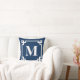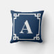 Navy Blue Modern Greek Key Border Monogram Cushion