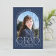 This navy blue simple minimalist graduation card serves as both a graduation announcement and grad party invitation, and features a photo, arch frame and elegant modern typography.