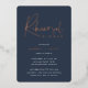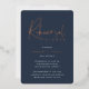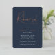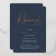 Invite guests to celebrate the happy couple with these modern and minimal rehearsal dinner invitations with luxe foil accents. Simple design features "rehearsal dinner" in casual rose gold foil handwritten script, with your event details beneath on a rich navy blue background.