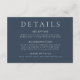 Navy Blue Modern Minimal Wedding Details Enclosure Card