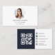 Navy Blue Modern Photo with QR Code Social Media Business Card