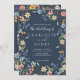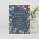 Navy Blue Modern QR Code Wildflower Wedding Invitation