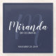This coaster features personalised bridesmaid's name in white modern script font style and monogram in light navy blue modern script font style as background with title and wedding date in white modern sans serif font style on navy blue background.