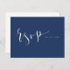 Navy Blue Modern Simple Script wedding RSVP Invitation Postcard