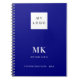 A navy blue background, white text. Personalise and add your logo, monogram initials, name and a title. Your logo both on the front and the back. Space for your website address on the back.
