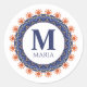 Navy Blue Monogram Name Mandala Custom Classic Round Sticker