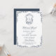 Navy Blue Monogram Vintage Crest Rehearsal Brunch Invitation